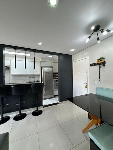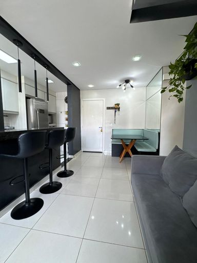 Sala para dois ambientes, com ótima iluminação natural